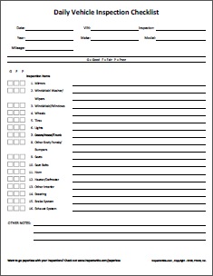Daily Vehicle Inspection Checklist Template