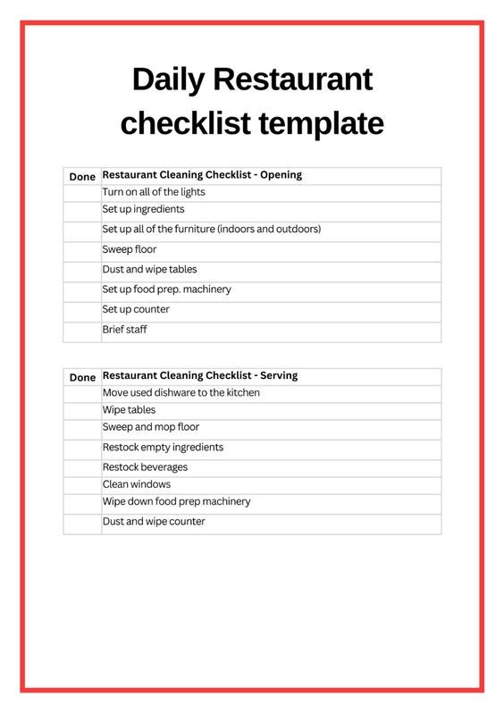 Restaurant To Do List Template