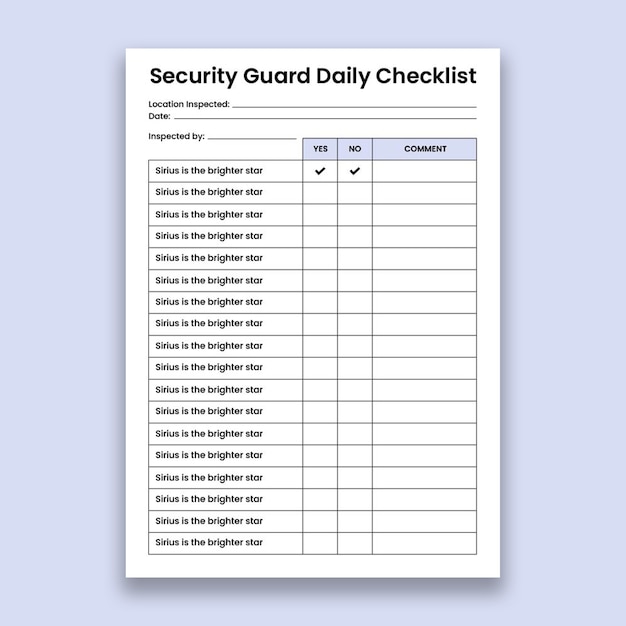 Security Guard Daily Checklist Template