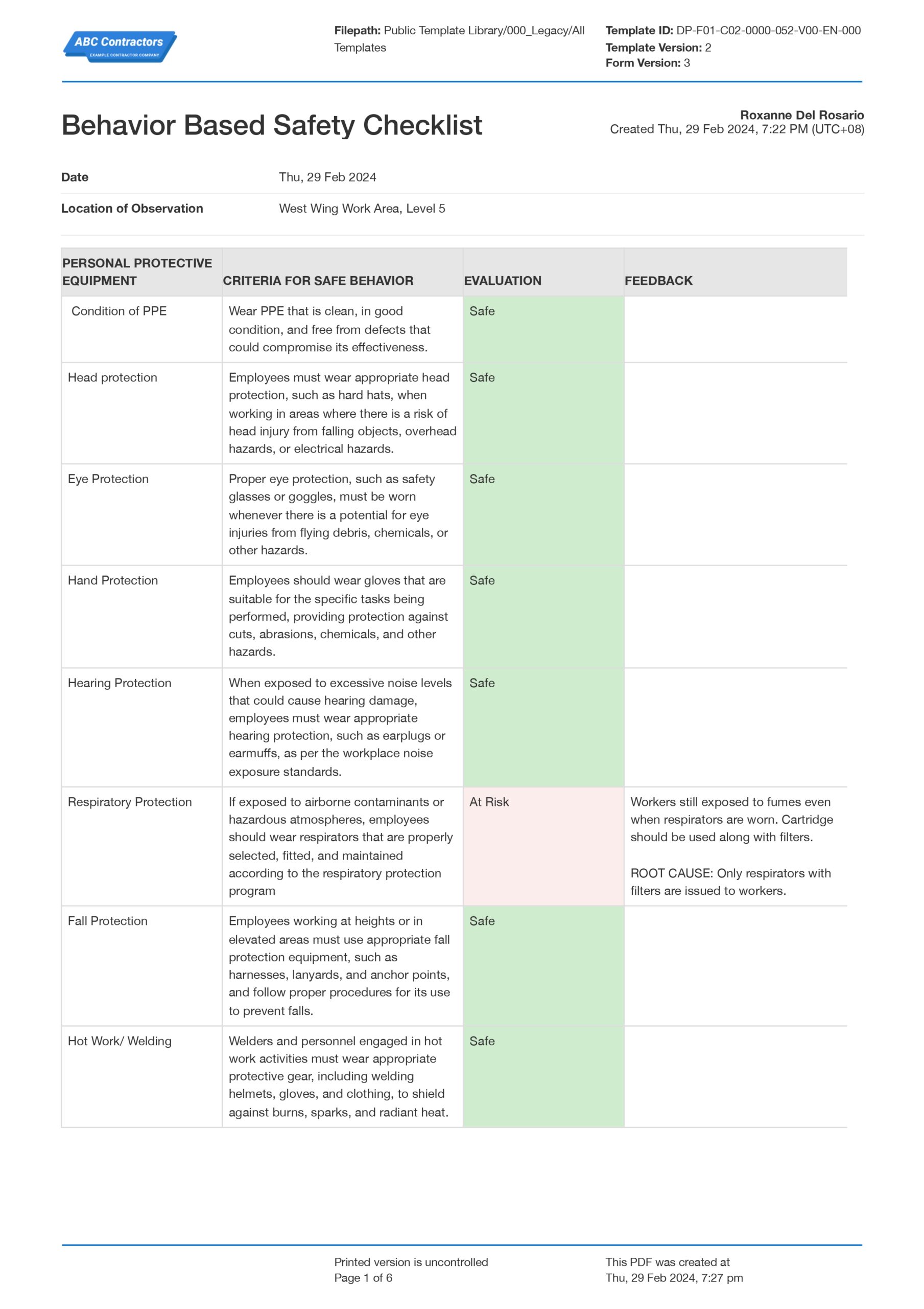 Crafting Your Own Behavior Based Safety Observation Checklist Template for Success