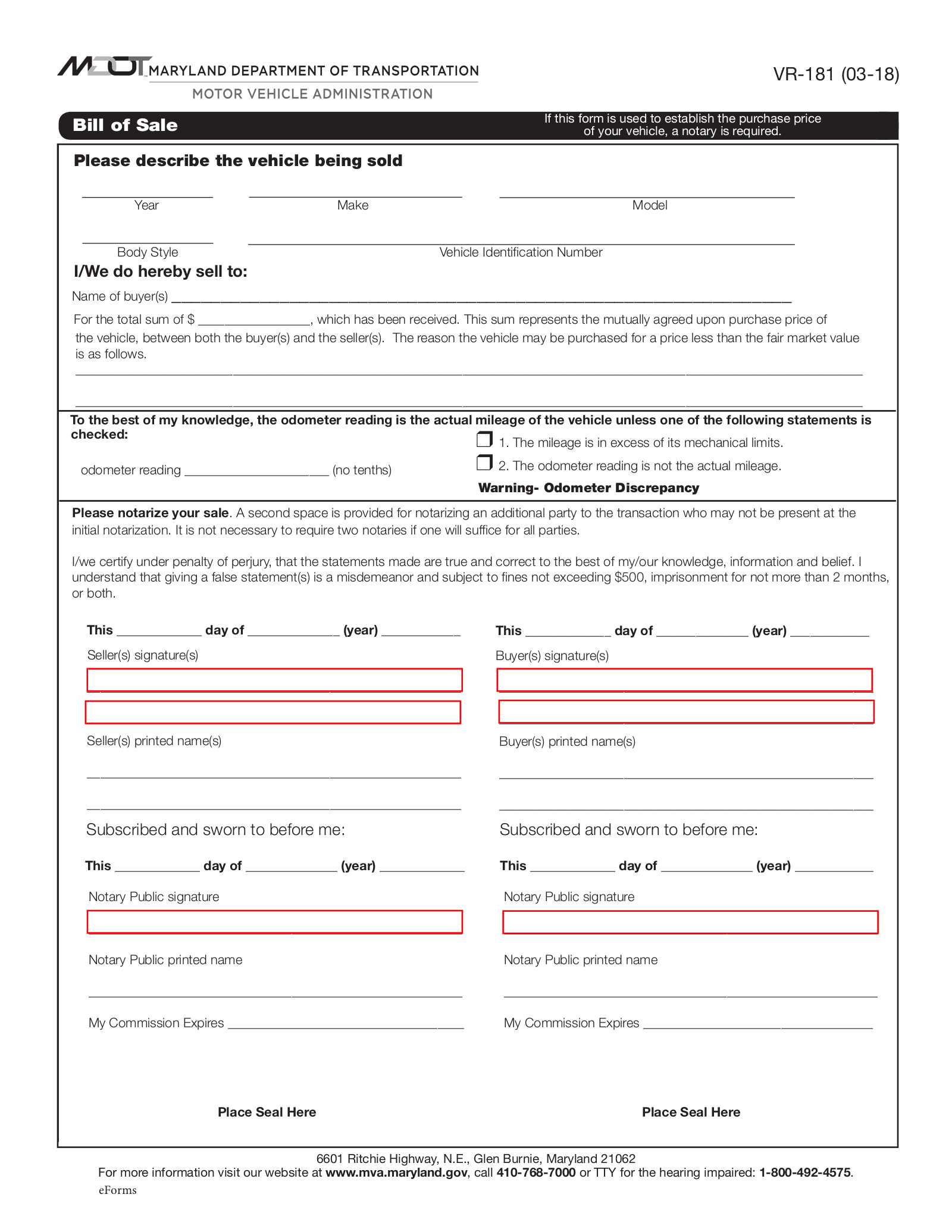 The importance of accuracy and completeness cannot be overstated. Any omissions or errors could potentially invalidate the document or lead to future complications. For instance, an incorrect VIN on a vehicle bill of sale could cause significant delays or even legal headaches when attempting to register the vehicle with the MVA. Taking the time to double-check every piece of information before signing is a small effort that can save a lot of trouble down the road.