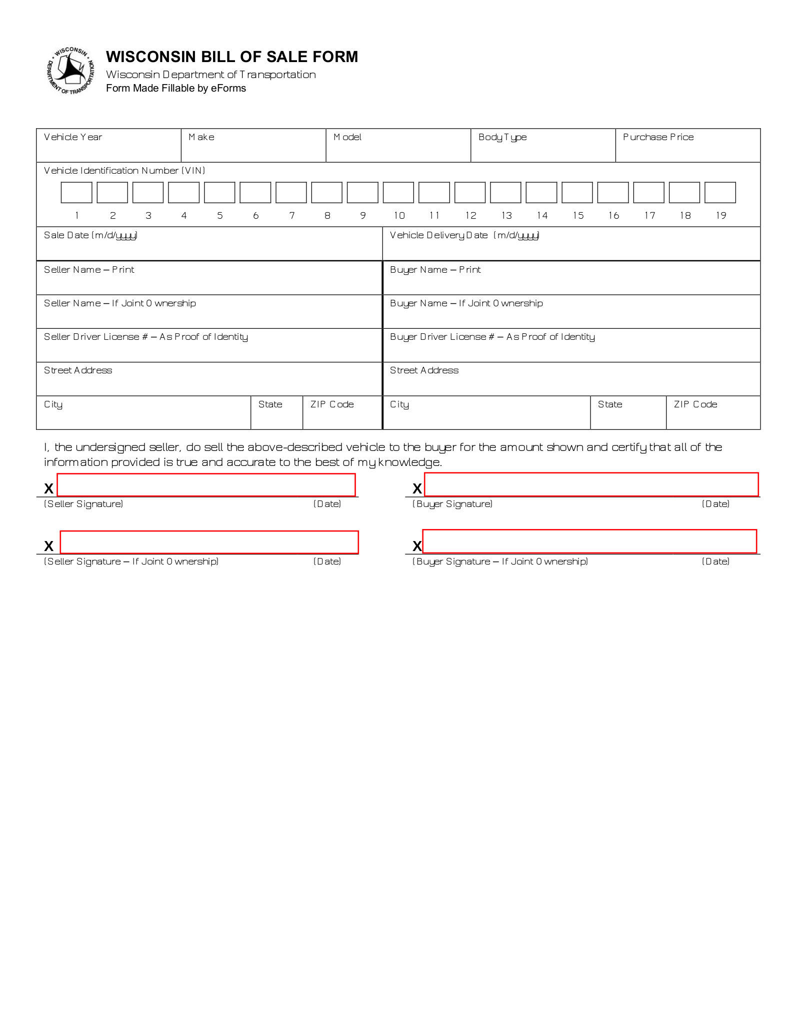 Furthermore, for items like motor vehicles, boats, or snowmobiles, a bill of sale is often a required document when registering the item with the Wisconsin Department of Transportation (DOT) or Department of Natural Resources (DNR). It verifies the purchase price for tax purposes and confirms the legitimate transfer of ownership, allowing the new owner to title and register the property in their name without issue. Even for items not requiring state registration, it offers peace of mind.