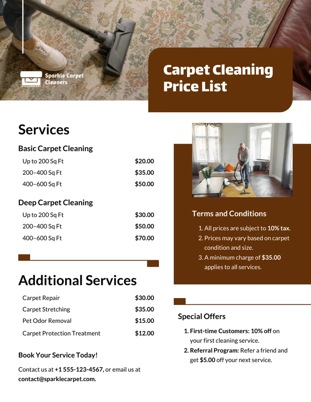Carpet Cleaning Price List Template