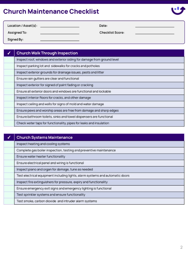 By organizing your maintenance tasks into these distinct categories, you can delegate responsibilities more effectively and ensure that specialists are brought in when needed. A comprehensive church building maintenance checklist template built around these areas will become an invaluable tool for your facility management.