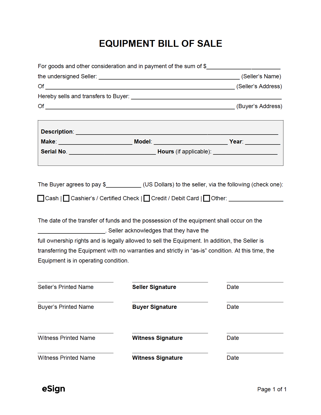 - A clear statement about the equipment’s condition, often including an “as-is” clause.