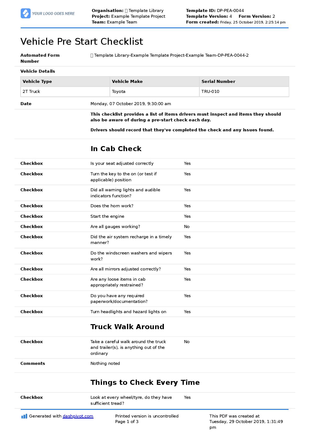 This article will explore why a comprehensive checklist is indispensable, what elements it should ideally include, and how you can tailor it to meet your specific operational needs. By standardizing your pre-start procedures with a well-designed template, you empower drivers, enhance safety protocols, and contribute to a more reliable and efficient fleet operation.