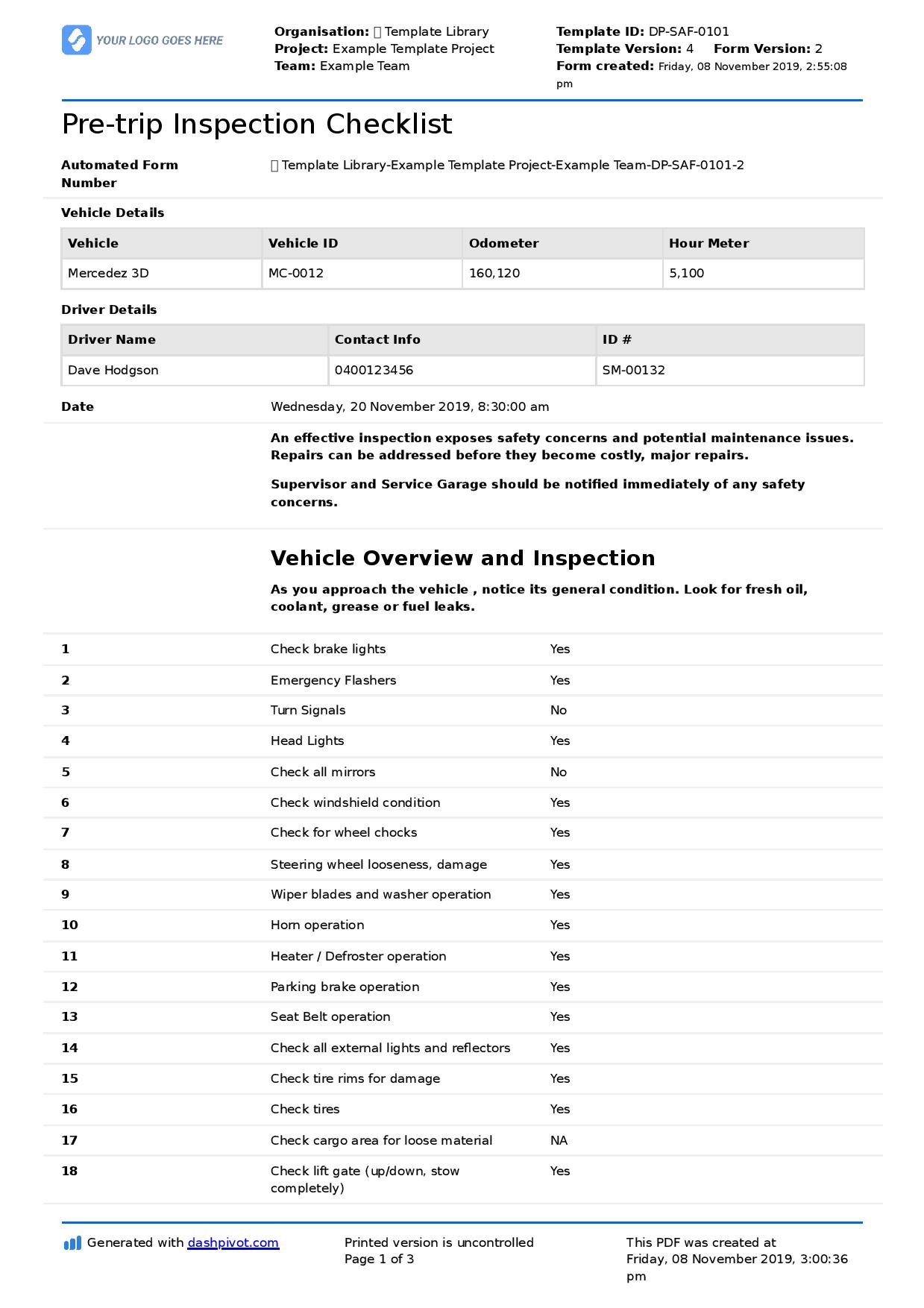 • Review and update your template regularly: As your vehicle or operating environment changes, so too should your inspection points.