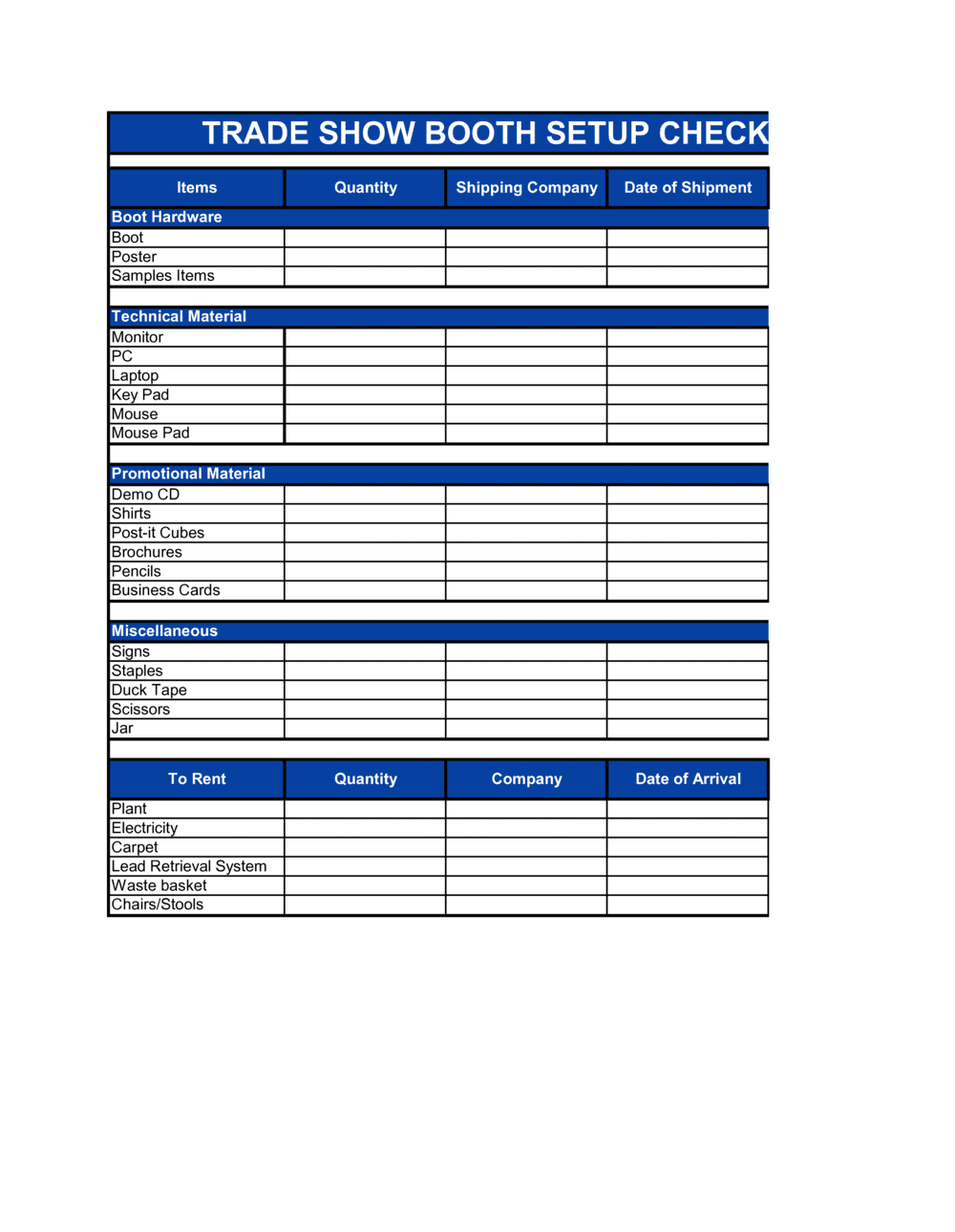 Trade Show Booth Checklist Template